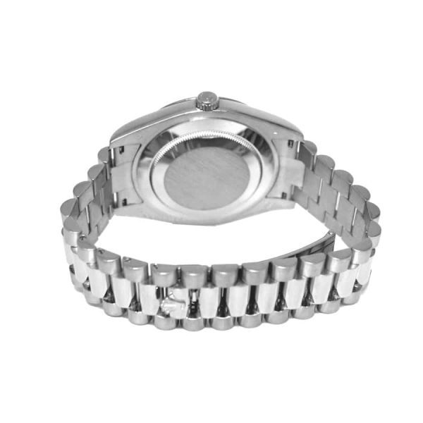 The Rolex Day-Date II 218239 V6 Stainless Steel White Dial Replica is a stunning watch. It features a 904L stainless steel case and bezel, with a sapphire crystal and adjustable links for all sizes. The white dial is adorned with Roman numerals and 904L stainless steel stick hands. The movement is an automatic 3156 caliber with a 60-hour power reserve and precision within COSC certification limits.