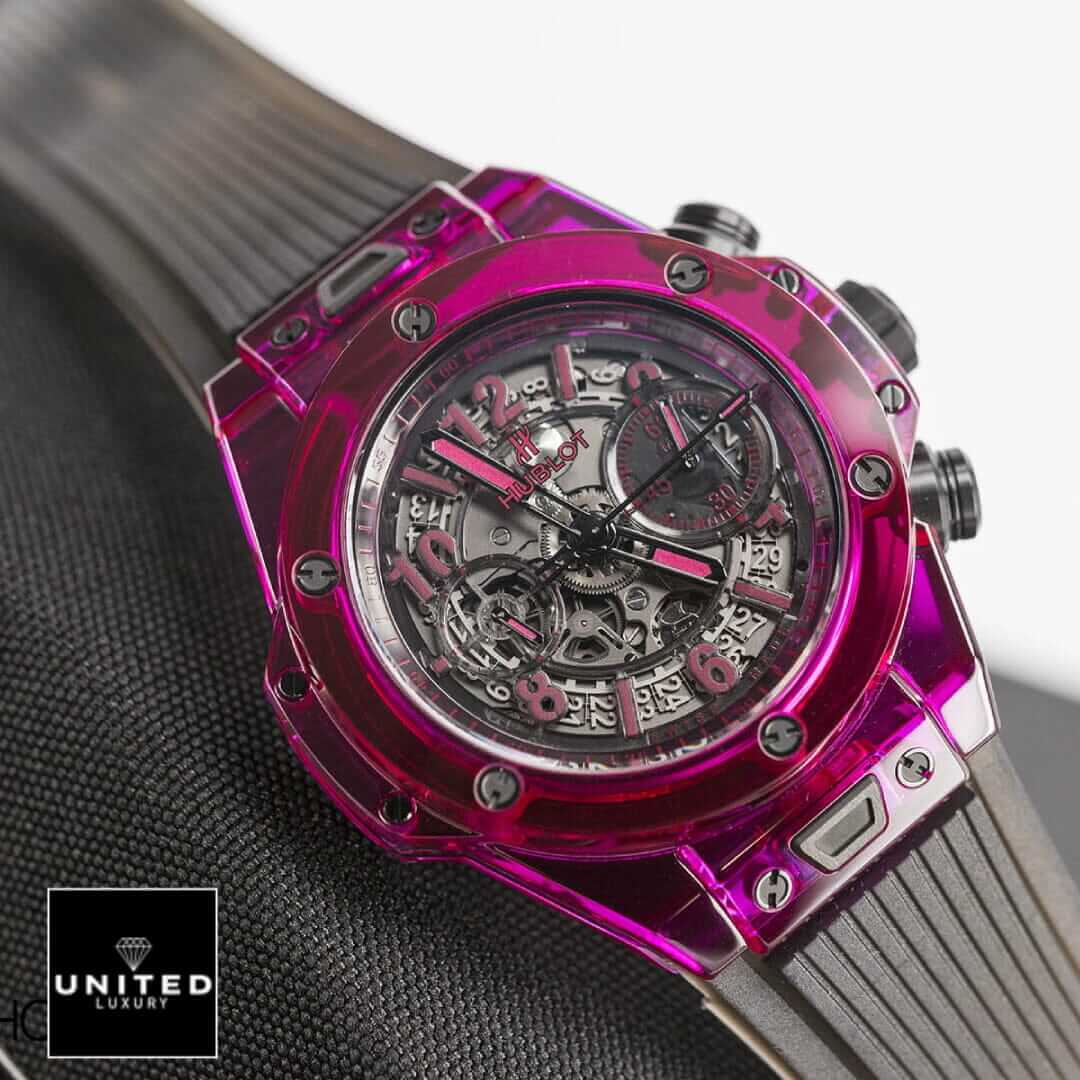 The Hublot Big Bang Unico Red Sapphire 411.JR.4901.RT.1902 Sapphire Replica is a luxurious watch that is sure to turn heads. It features a 45.00 mm resin, sapphire, and gem set case in a striking blue color. The bezel is made of resin and sapphire and is black in color. The crystal is a sapphire crystal for added durability. The bracelet is made of rubber and is adjustable for all sizes. It also features a double-fold clasp made of stainless steel and black in color.