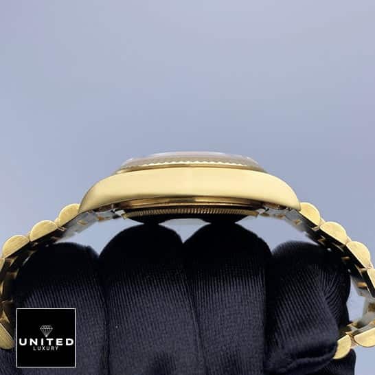 This Rolex Day-Date 40 228239 EW Stainless Steel White Gold Dial Oyster Replica is a stunning watch. It features a 904L stainless steel case and bezel, with a yellow gold color. The sapphire crystal is 36.00mm in size and the movement is an automatic caliber 3155 with a 60-hour power reserve and precision of -3/+3 sec/day within COSC certification limits. The dial is ivory in color with stick and dot indices, and the hands are 904L stainless steel stick type. The bracelet is a 904L stainless steel jubilee type with adjustable links and a 904L stainless steel folding clasp in yellow gold.